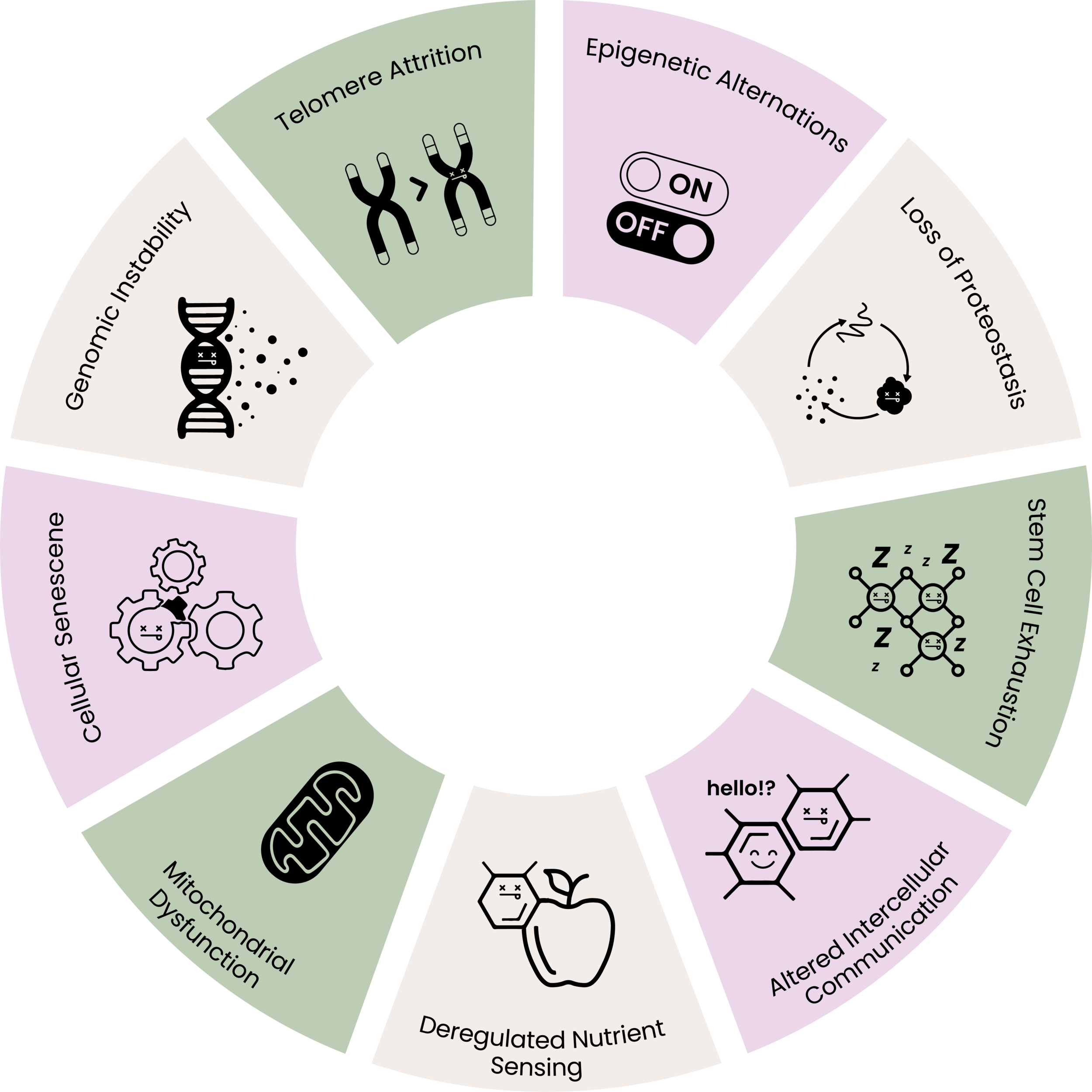 Originally proposed in 2013 and recently updated to include three new hallmarks, this framework categorizes aging into primary, antagonistic, and integrative.